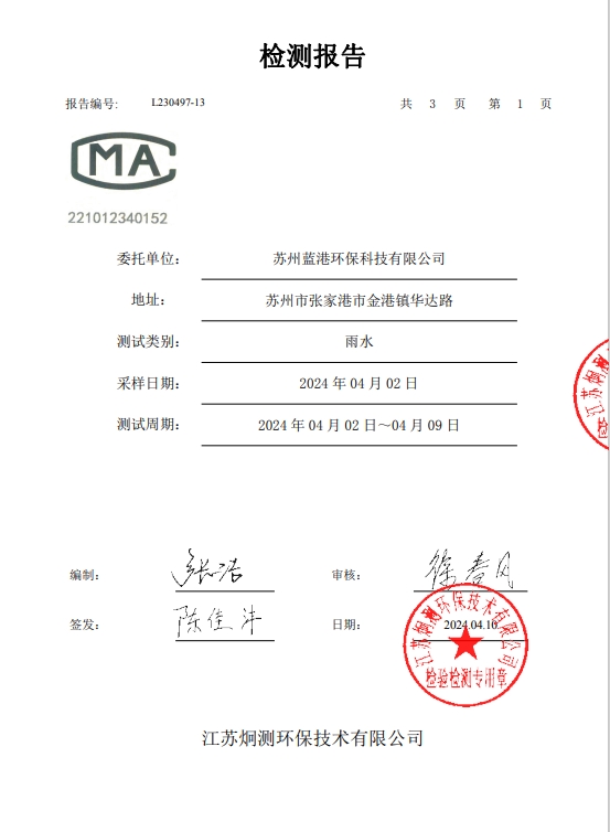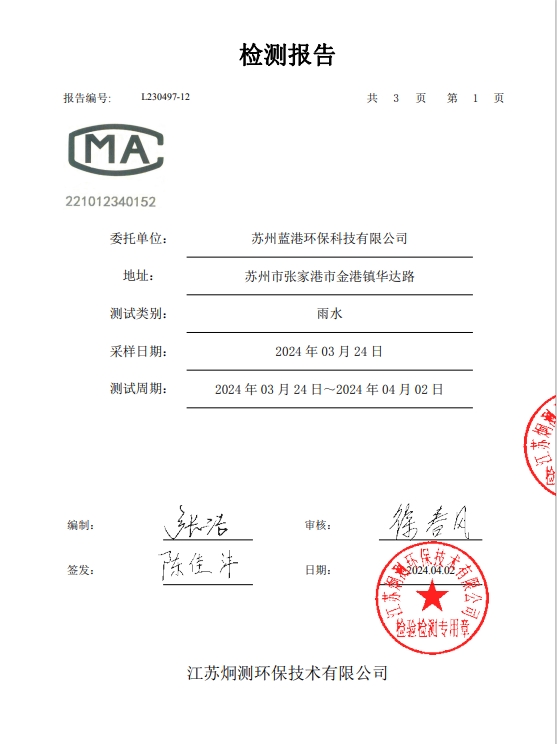 蘇州藍(lán)港環(huán)保科技有限公司檢測(cè)報(bào)告已公示,詳情請(qǐng)查...